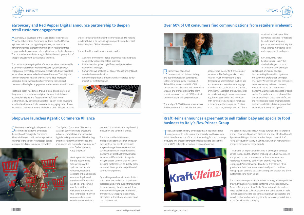 The transaction supports Kraft Heinz’ s strategy to drive profitable growth through its Accelerate platforms, which include HEINZ Tomato Ketchup and other‘ Taste Elevation’ products, such as mayo, table sauces, culinary products and pasta sauces. In Italy, HEINZ has continued to see consistent growth across retail and away from home channels, significantly increasing market share in the Taste Elevation category. www. intelligentretail. tech 11
