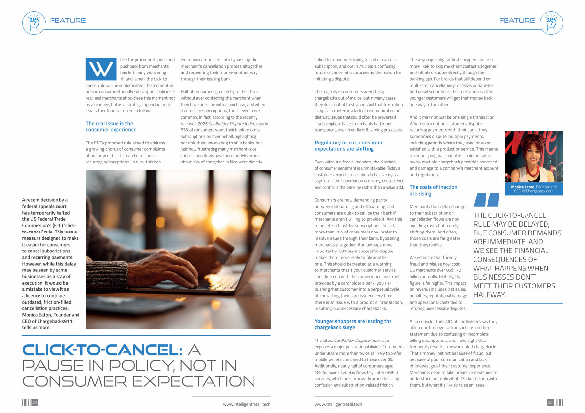 THE CLICK-TO-CANCEL RULE MAY BE DELAYED, BUT CONSUMER DEMANDS ARE IMMEDIATE, AND WE SEE THE FINANCIAL CONSEQUENCES OF WHAT HAPPENS WHEN BUSINESSES DON’ T MEET THEIR CUSTOMERS HALFWAY. www. intelligentretail. tech 25